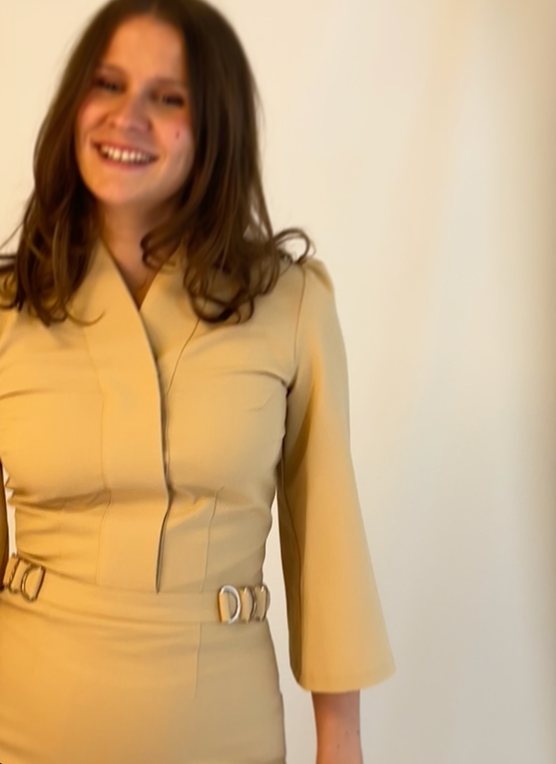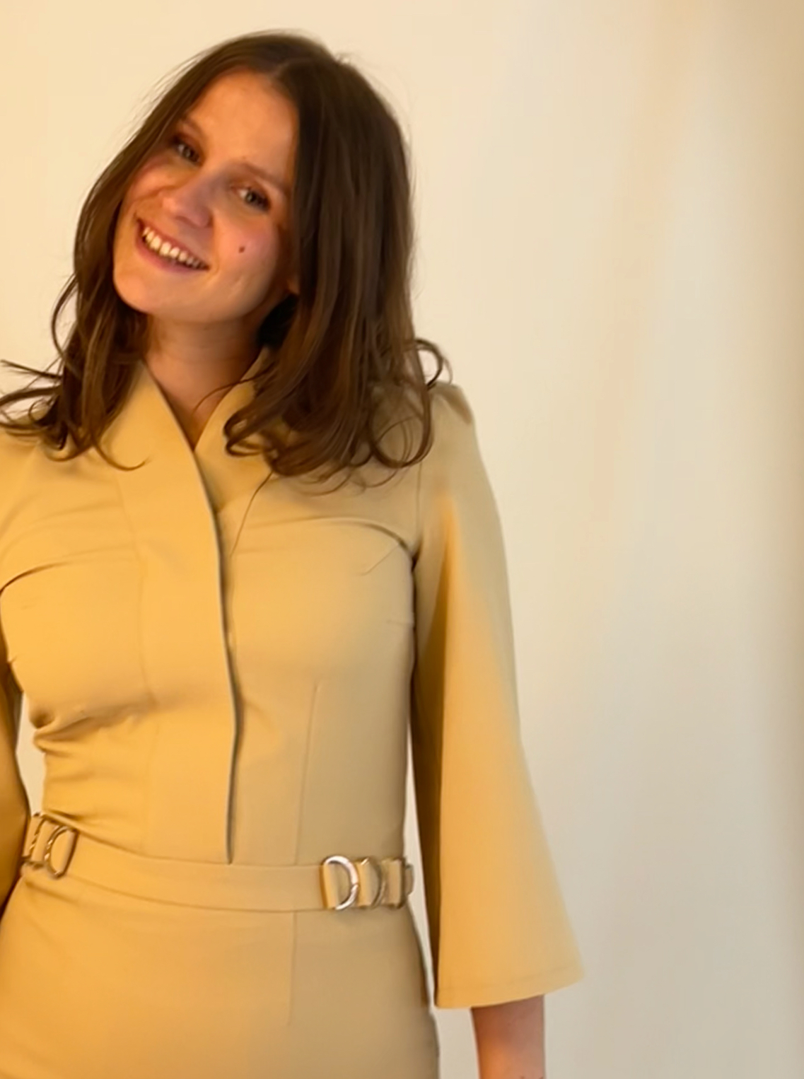 Lys gul kjole med sjalskrave