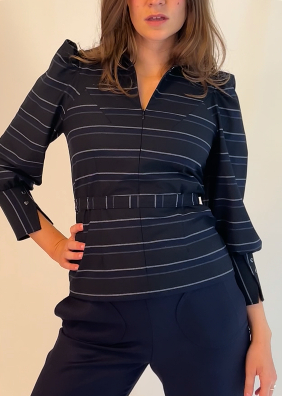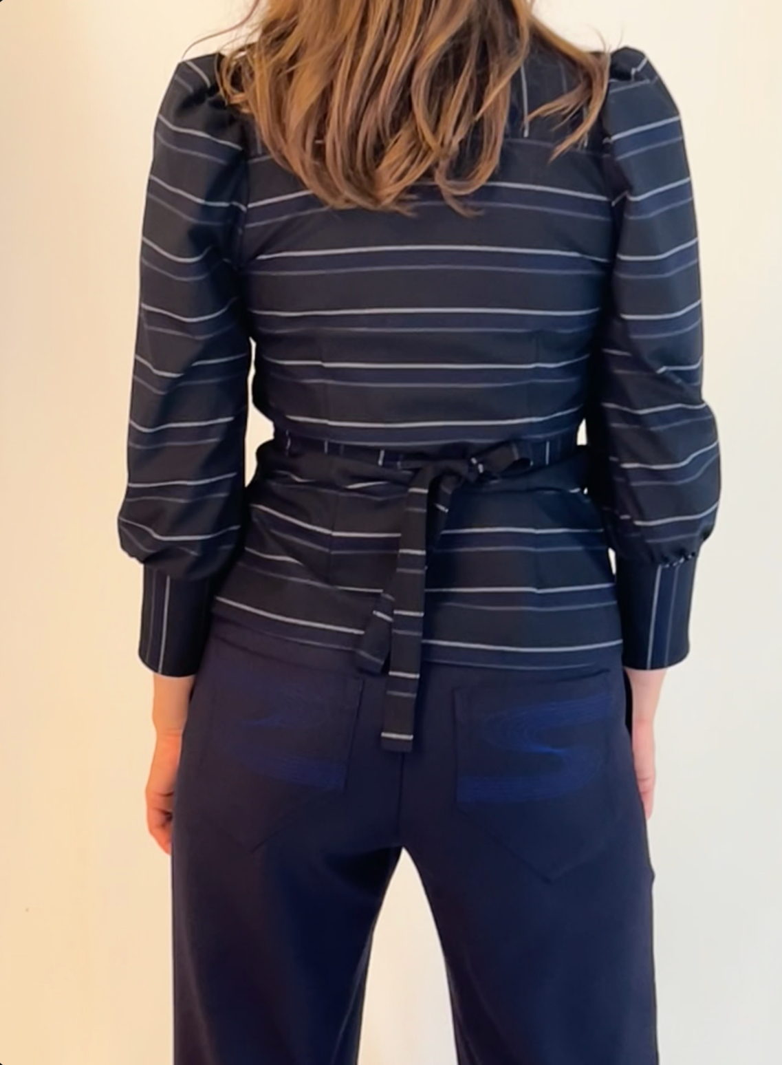Marineblå uldbuks med syet pressefold